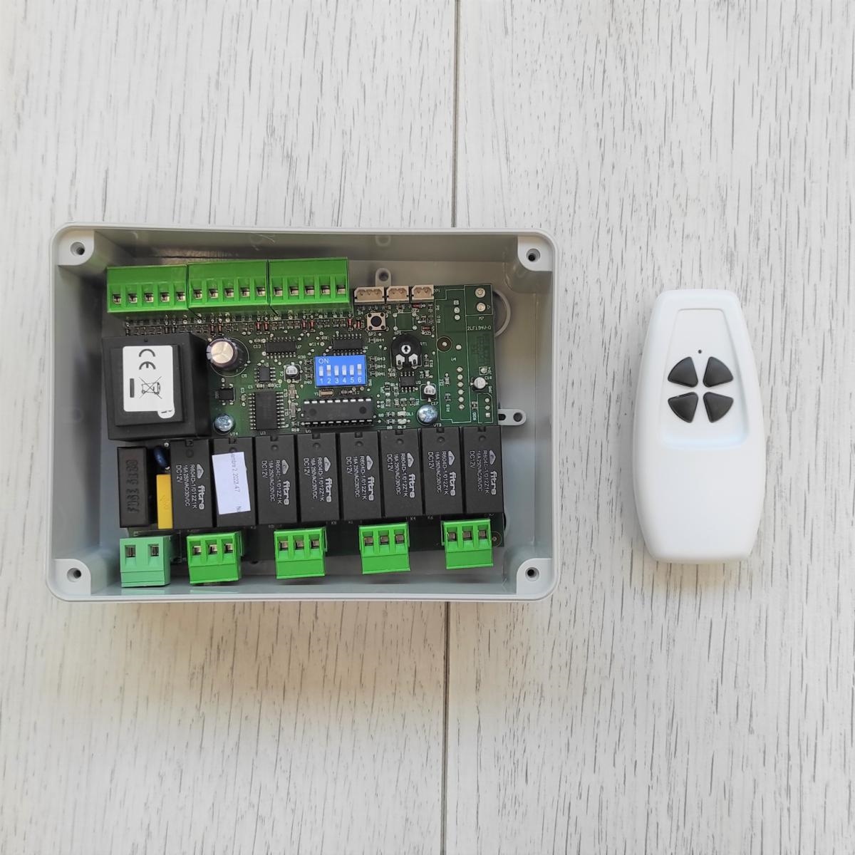 RICAMBIO - CENTRALI DI COMANDO Centrale di comando da 1 a 4 moori, 230 VAC, Uscite per controllo sole vento e pioggia Uscita comandi locali e generalale impulsivi funzione radio 433 Mhz (Include TX 873)